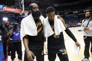 “你要怎么防守哈登和米切尔,你是一对一防守还是投入更多的人力,因为骑士有不少接球就投的三分射手,当他们突破时就会有空位的三分机会。那就是问题,你是让哈登和米切尔击败你,还是让其他人击败你。”